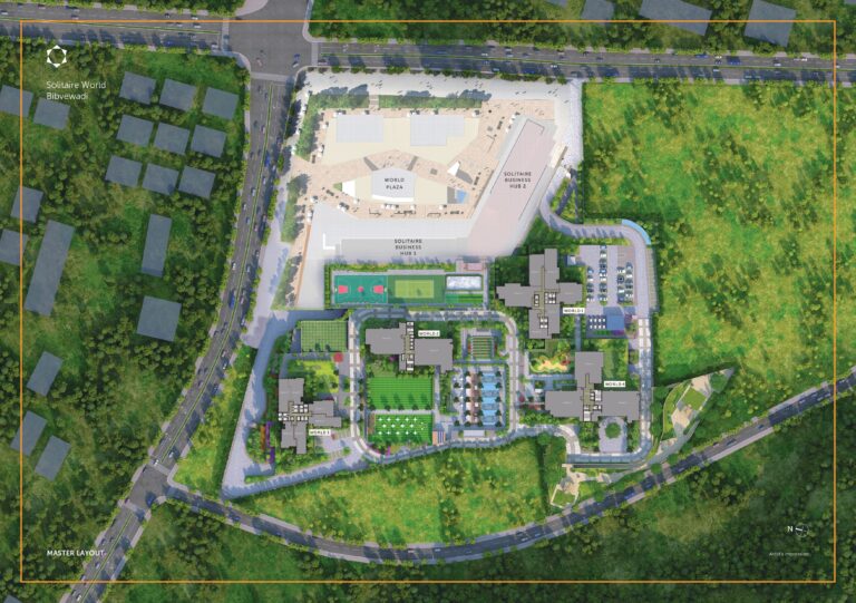 This communication is for representational purposes only, it describes the conceptual plan to convey the content and purpose of the project, not to constitute the promise by the promoter, nor does it create any obligation on the part of the Promoter. The Projects Solitaire Business Hub Phase 1 Solitaire World RERA Reg. No. P52100017521, Solitaire Business Hub Phase 2 Solitaire World RERA Reg. No. P52100017591, World Plaza Solitaire World RERA Reg. No. P52100017361, World One Solitaire World RERA Reg. No. P52100004877, World Three Solitaire World RERA Reg. No. P52100018407 have been registered with MahaRERA and details are available on the website https://maharerait.mahaonline.gov.in under registered projects. The specifications quoted in the above communication are subject to change and the information provided on the RERA portal shall be construed as final and binding. The number of floors quoted includes parking floors in each tower. The above-mentioned projects and other conceptualized projects are a part of a larger multi use project spread over the larger sanctioned layout. All facilities and amenities depicted are spread over the whole project and shall be developed/provided in a phase wise manner at the discretion of the promoter with regards to the time of completion of the respective amenities. *Govt. Taxes and Other Charges are applicable.